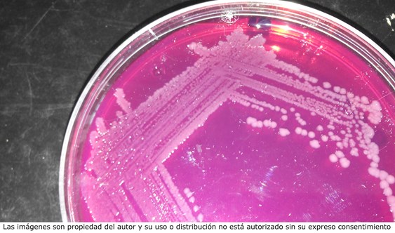 Colonias de Salmonella en agar verde brillante
